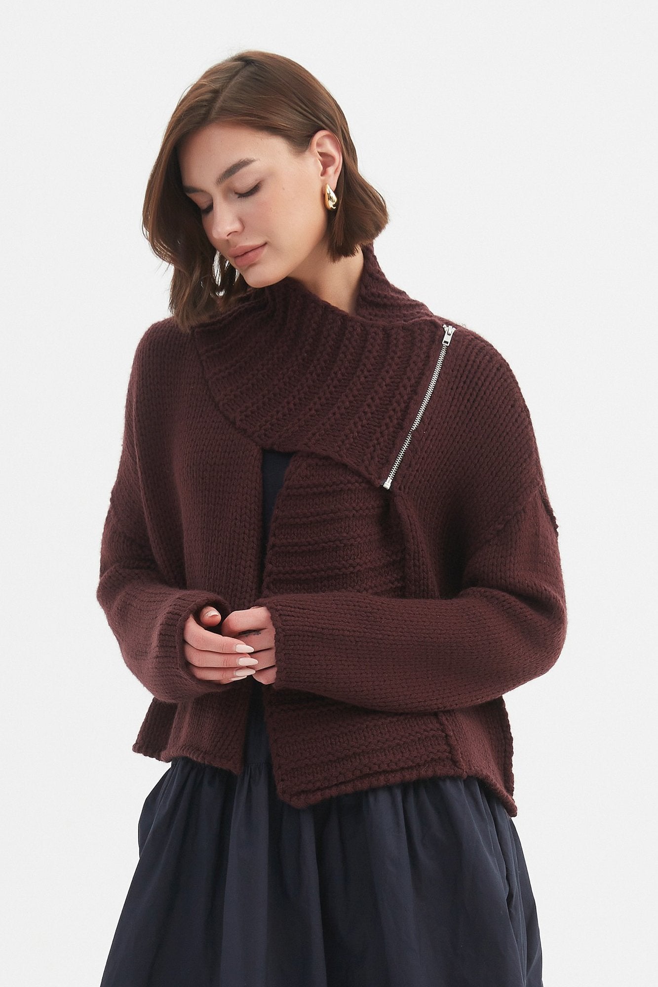 CARDI ZIP COLLAR KNIT